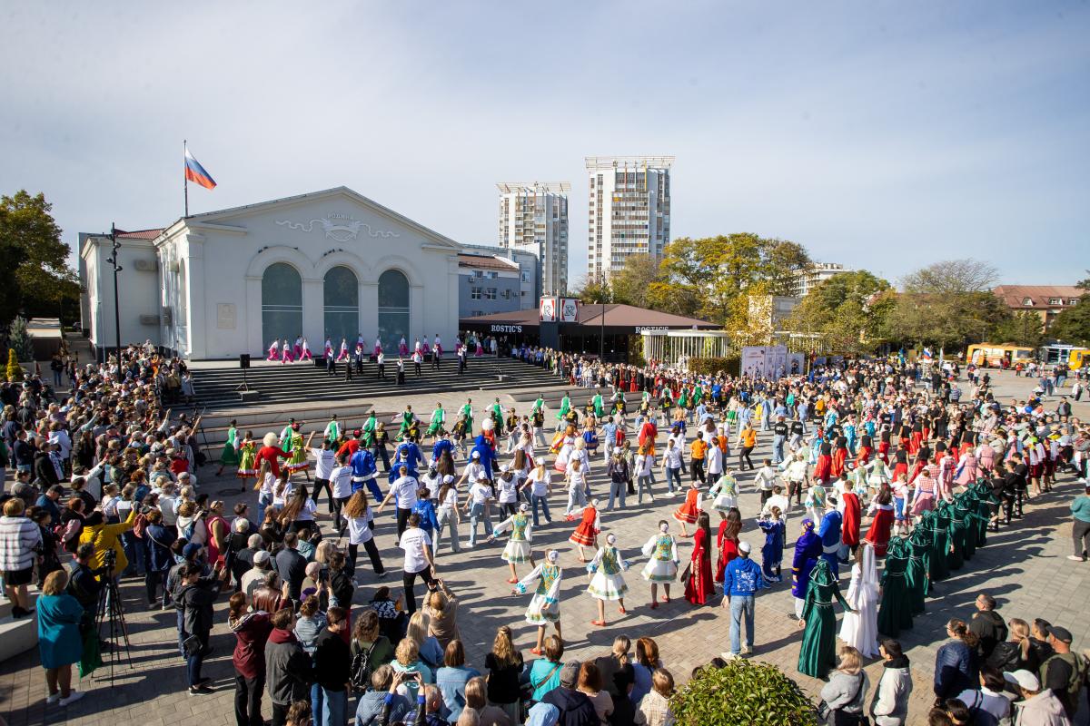 С утра здесь работали интерактивные площадки, подготовленные анапскими вузами и ссузами, общественными национальными и молодежными организациями. Были представлены культуры и традиции разных народов, проживающих в России. Среди них – русские, армяне, греки, казахи, белорусы, грузины, казаки, жители Крайнего Севера и другие. Можно было увидеть красочные народные костюмы, сувениры, попробовать блюда национальной кухни и, конечно, сделать фото на память.