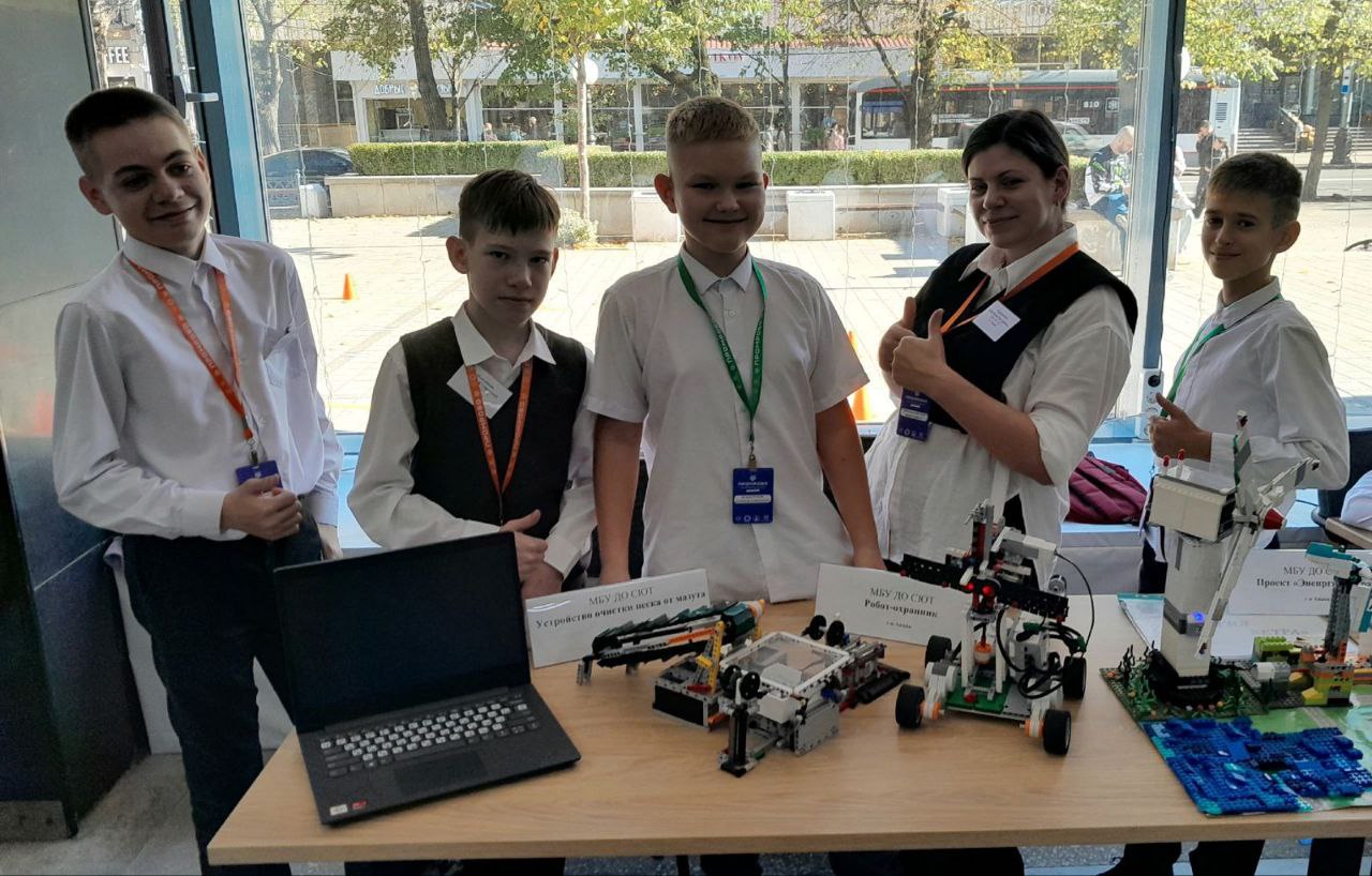 Учащиеся станции юных техников из кружков «Леготопы», «Робототехнический» вместе с педагогами Кругликовой Ольгой Констановной и Курганской Анастасией Дмитриевной представили свои исследовательские проекты на выставке: