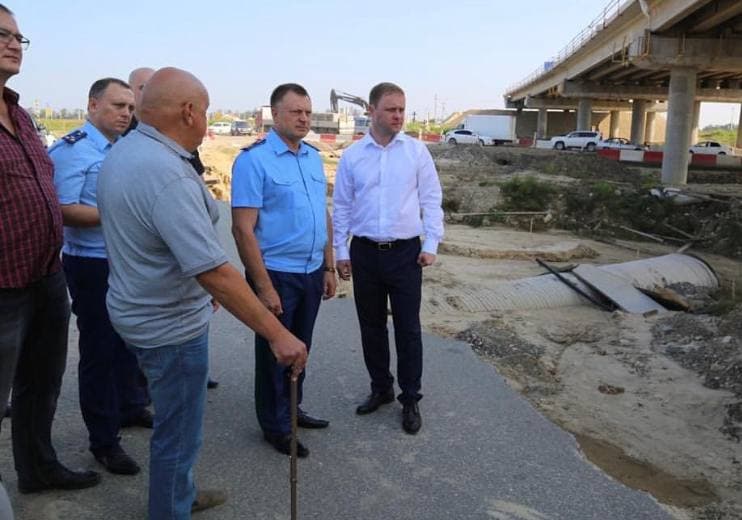 На участке, где была размыта федеральная дорога «Новороссийск – Керчь» рядом с пос. Пятихатки, представители Росавтодора доложили, как в кратчайшие сроки здесь построили временную объездную дорогу. Сергей Табельский поговорил с дорожниками об ущербе, нанесенном стихией, о предстоящих работах и акцентировал, что при проектировании подобных объектов вдоль рек и других водных артерий необходимо предусматривать аварийный сброс воды в случае паводковых ситуаций: «Готов дать поручение, чтобы подобную работу провели по всему краю. Дорожное полотно должно быть надежным, а на участках, где проходят реки и ручьи, надо учитывать возможность подъема воды и разлива».