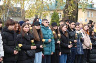 Память ушедших из жизни Героев почтили минутой молчания. Учащиеся кадетской школы имени Героя Советского Союза Николая Старшинова торжественно пронесли огромную Георгиевскую ленту. Завершилась акция возложением цветов к стеле Города воинской славы.