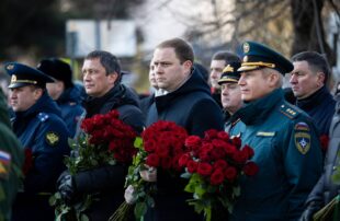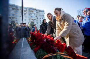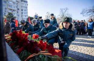 В память о тех, чей подвиг всегда будет жить в благодарных сердцах анапчан, к стеле возложили Гирлянду славы, а также цветы.