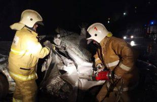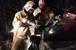 Прибывшие на место вызова спасатели извлекли из аварийного авто двоих погибших. Один пострадавший был госпитализирован.