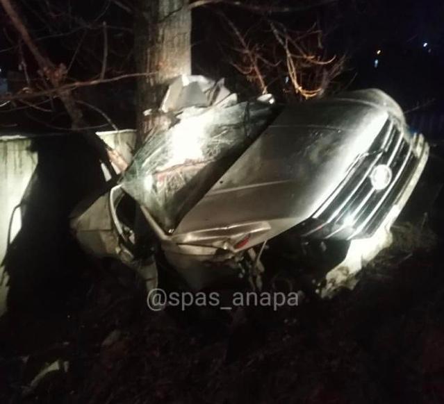 Водитель автомобиля не справился с управлением и совершил наезд на дерево.