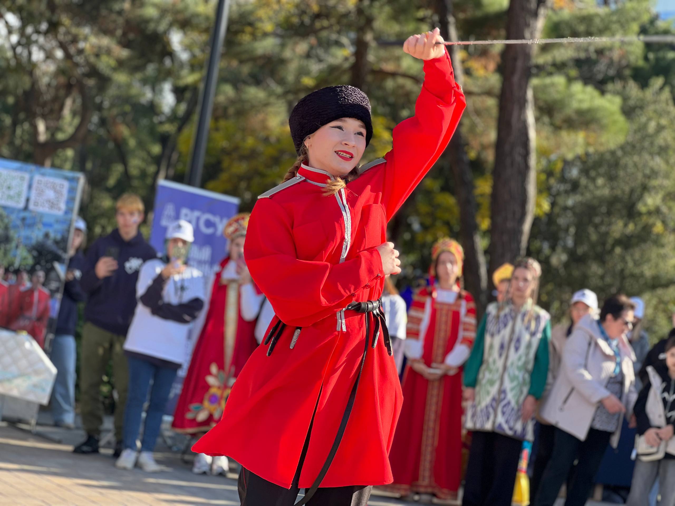 На театральной площади развернулось множество площадок, где студенты ССУЗов и ВУЗов представили культуры и традиции разных народов, проживающих в России. Среди них – русские, армяне, греки, казахи, белорусы, грузины, казаки, жители Крайнего Севера и другие. Можно было увидеть красочные народные костюмы, сувениры, попробовать блюда национальной кухни и, конечно, сделать фото на память, сообщает управление по делам молодежи администрации Анапы.