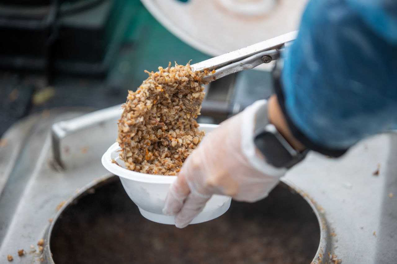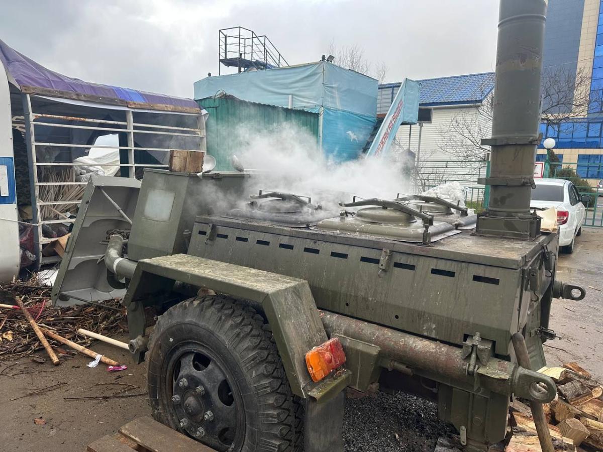 Одна из самых крупных полевых кухонь расположена возле центрального пляжа в станице Благовещенской. Сегодня для ликвидаторов последствий выброса мазута здесь приготовили сытный суп и гречневую кашу с тушенкой. За день повара готовят более 2 с половиной тысяч порций, сообщает пресс-служба администрации Анапы.