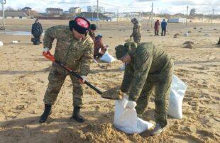 Около 400 казаков участвуют в очистке пляжей Анапы от нефтепродуктов