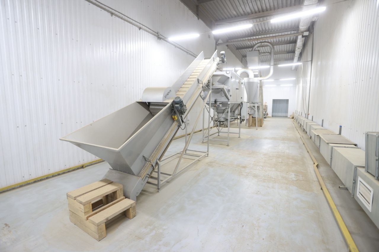 Просторные складские помещения рассчитаны на 1,5-2 тысячи тонн сырья. Специализированные станки производят продукцию любой фракции растительного сырья. В этом году установлены 3 новые линии.