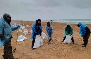 - Сотрудники администраций и жители сельских округов Анапы помогают устранять разлив нефтепродуктов на побережье