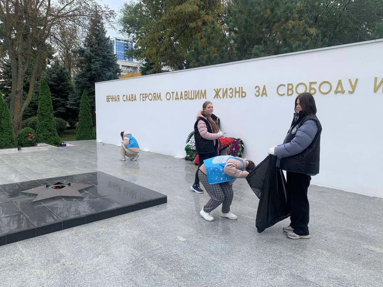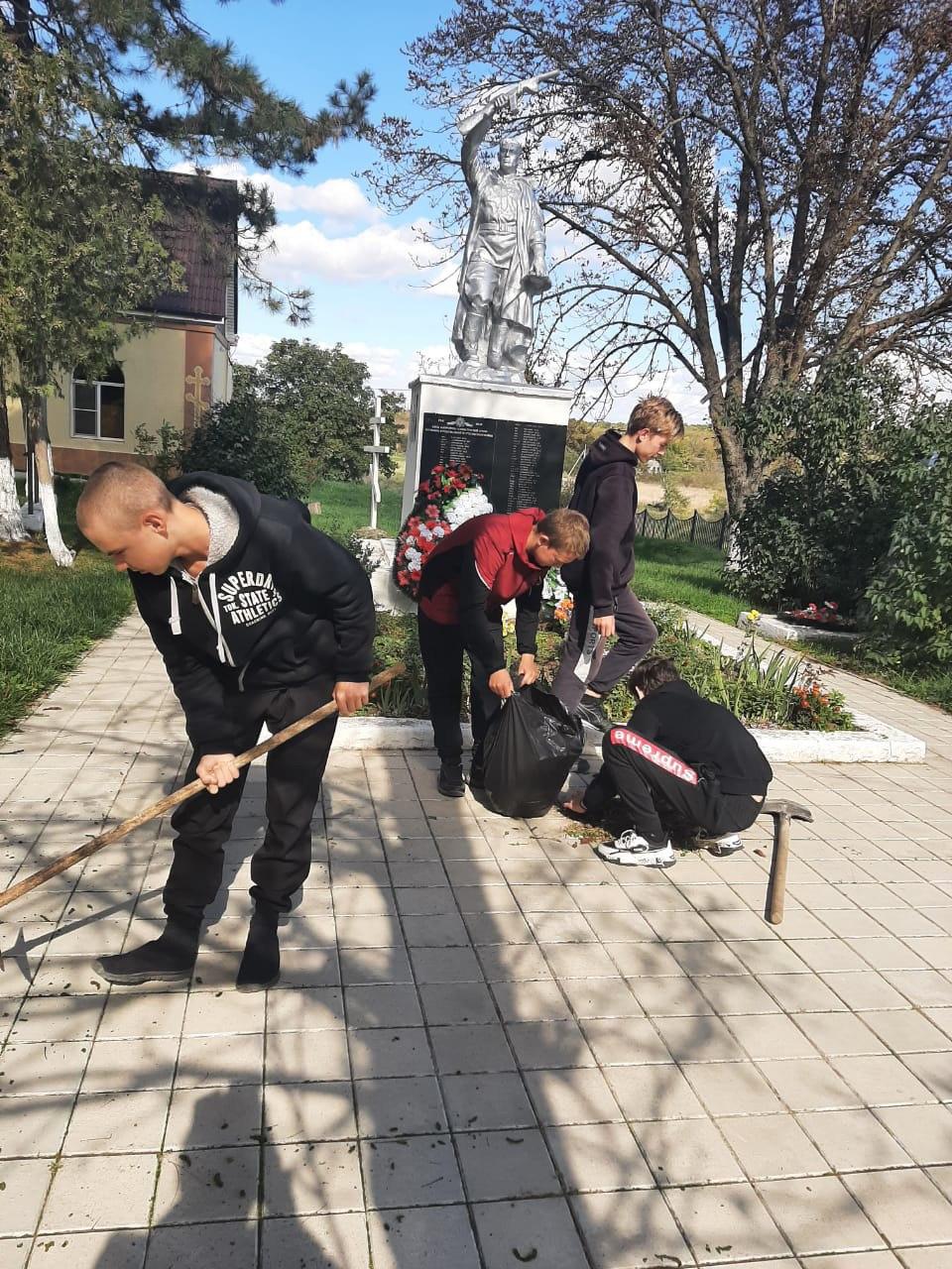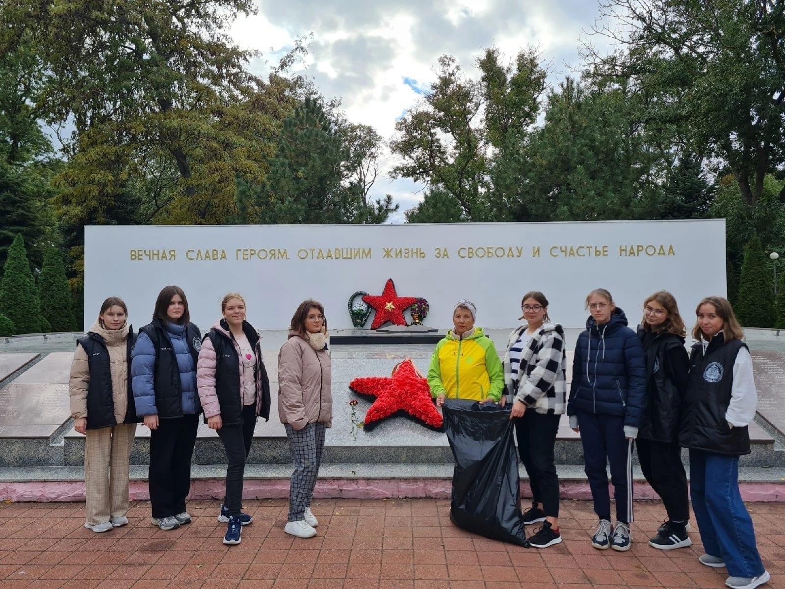 Волонтеры отряда «Связь поколений» совместно со Всероссийским общественным движением «Волонтеры Победы» организовали экологическую акцию на территории Сквера боевой славы, позаботившись о прилегающей к мемориалу территории.