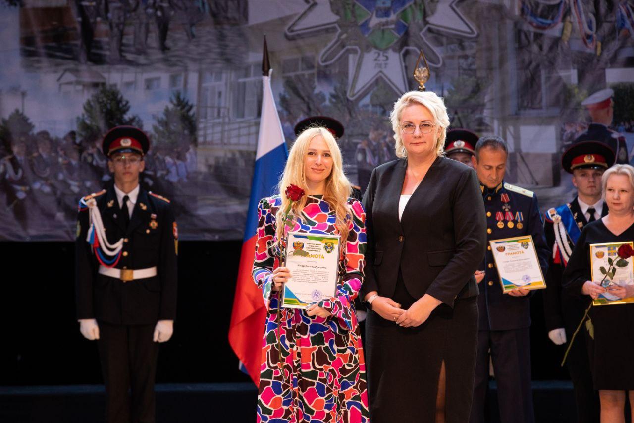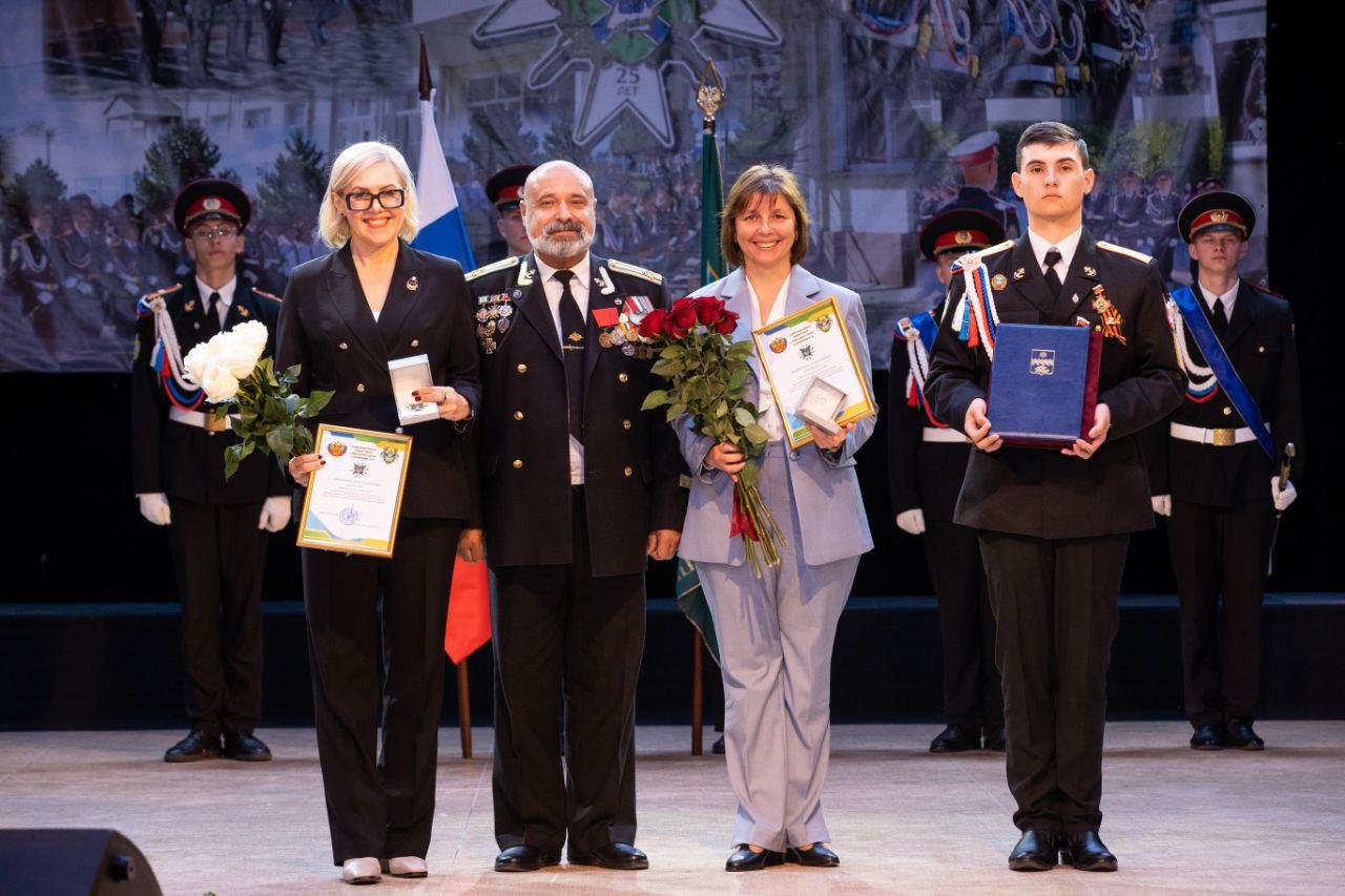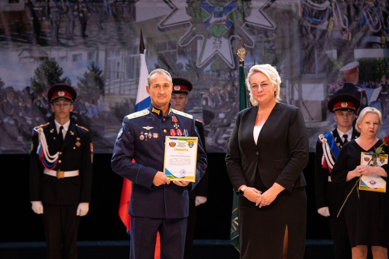 Участников торжественного мероприятия, которое состоялось в Городском театре, с 25-летием Кадетской школы имени Героя Советского Союза Николая Старшинова поздравили и.о. вице-мэра Елена Быкова и заместитель председателя Совета Елена Некрасова.